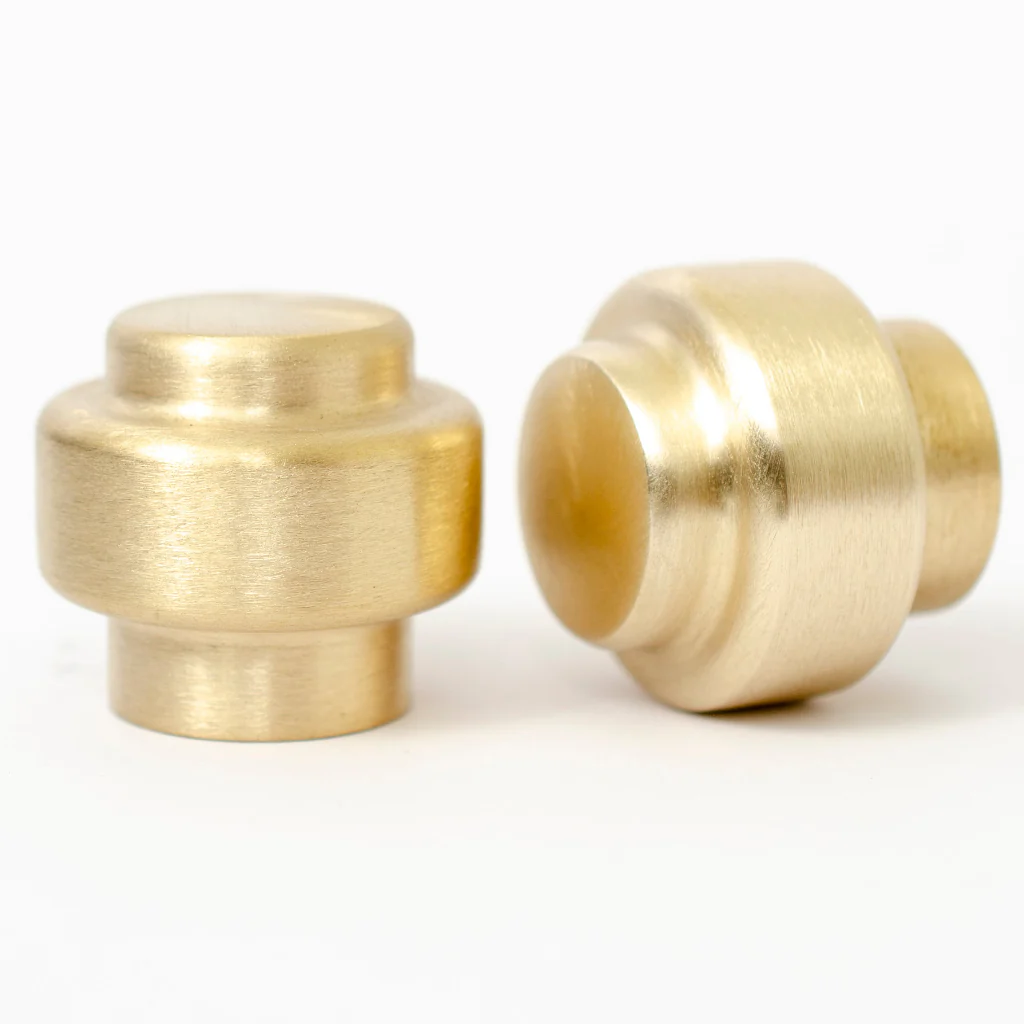 Solid polished brass, solid brushed brass, solid brushed stainless steel, solid polished stainless steel, or matte black aluminum.